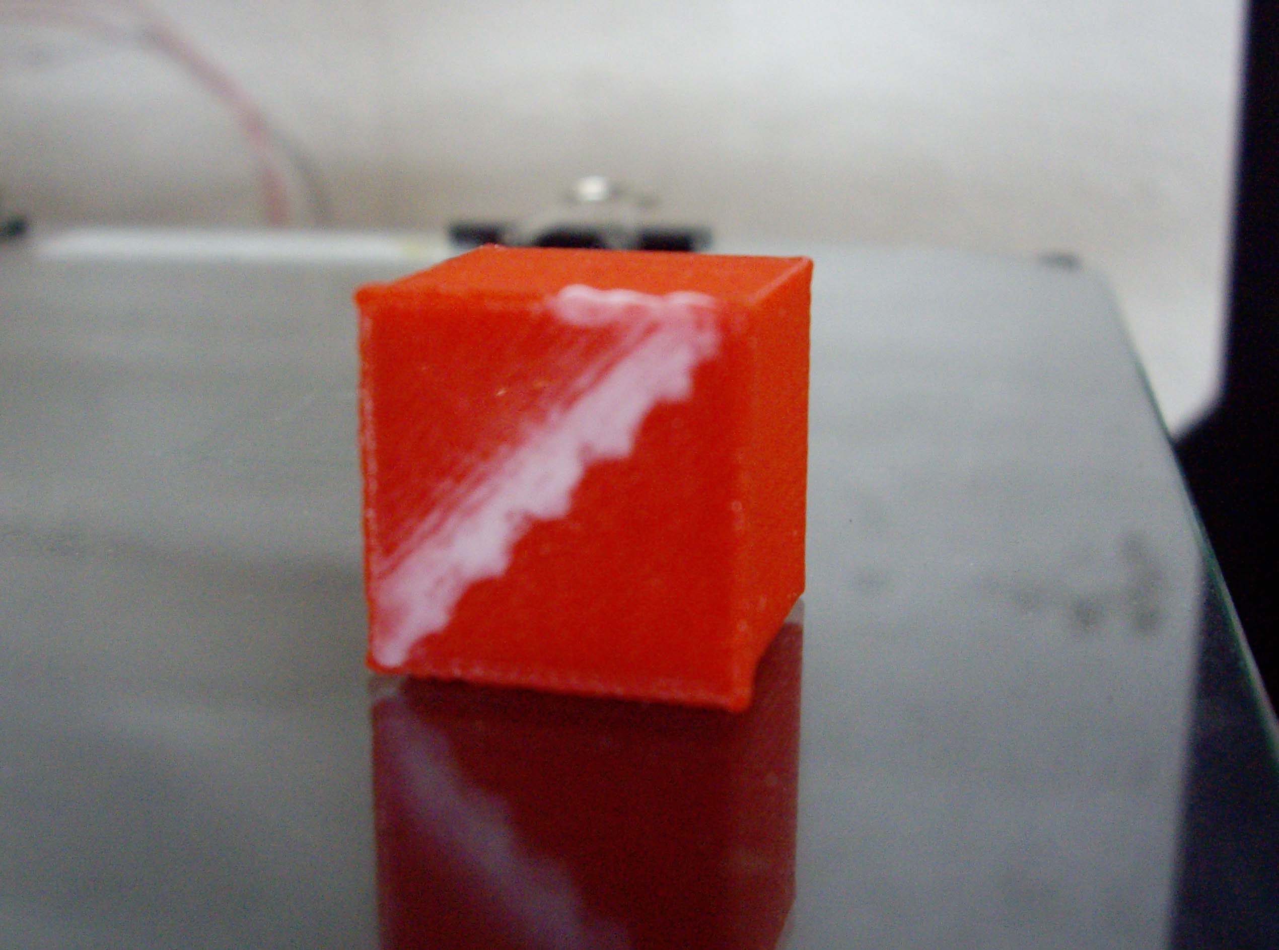 J'ai pu imprimer le cube, je note un léger renflement à la base, et ensuite il monte bien.