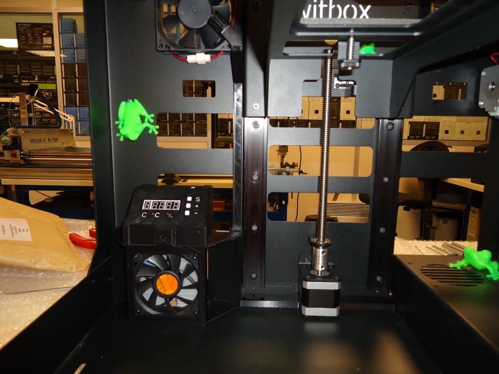 L'idée est d'avoir une température interne entre 25 et 28° idéale pour imprimer. Le bonus c'est de gagner du bruit en régulant la ventilation interne de la Witbox au strict minimum.